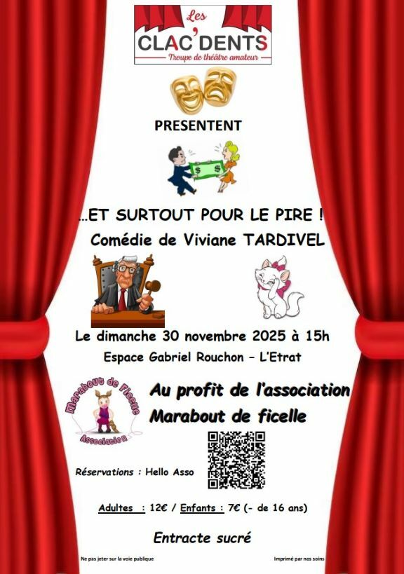 Dimanche 30 novembre 2025 à 15h, au profit de l’association « Marabout de Ficelle » qui récolte des fonds pour lutter contre les cancers pédiatriques.